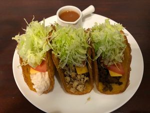 昨日食べられなかったこともあり、最後にタコス、タコライスが食べたかった。なので沖縄最後の食事はDay 4に行けなかったチャーリーに。 ツナ、チキン、ビーフ のタコス 3P 750円。全部旨かったけど、やっぱりビーフが一番旨いかな。ただ綺麗に食べるのが難しくてこぼれ落ちる…。