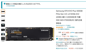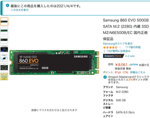 それに従いamazonで Samsung 860 EVO 500GB SATA M.2 8,061円を購入