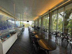 石段を下り終えて駐車場へ向かう。 疲れからか、カフェで甘いものを買ってしまう…。