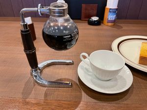 - コーヒーがフラスコに入って出てきた。ここからカップに注ぐ。1.5杯分の量がある。