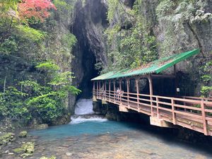まだ曇っているけど、先に秋芳洞に行くのでその間に晴れることを期待
