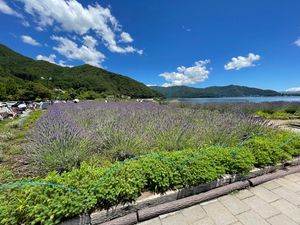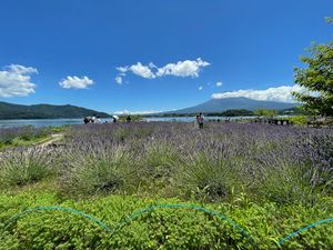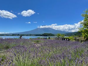 - ラベンダー等の花と富士山がきれい