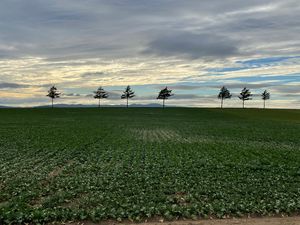 - 小高い丘に木が数本ある
