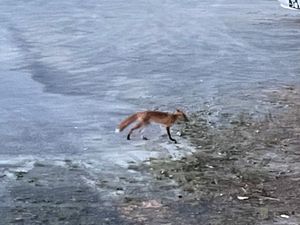キタキツネがいた。結構よく見るけど、写真に取るは難しい。