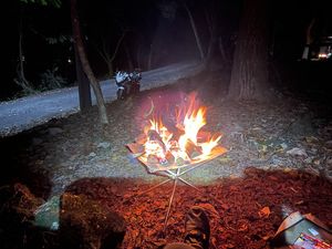 - ロングツーリングと比べて、椅子、焚き火台が増え、着替えが減ったぐらいか