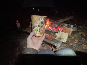 - 寒いので焚き火の途中だったけどテントに転がり込む