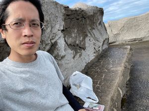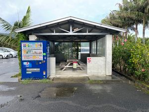 - 喫煙所でちょうど雨宿りできそうだったので、ここで雨が止むのを待つ