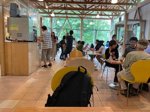 - 呼ばれて取りに行ったら席がない問題が発生。席は自由。食事をしている人以外に、待っている人達が席を占有しているので席がない