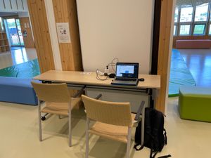 - 机、背もたれ付き椅子、コンセント、WiFiありの天国