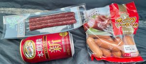 - 本麒麟、ロングカスパル、ポークソセージ、味噌汁