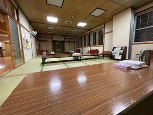 - 休憩所は広い和室。電源なし、WiFiあり、パスワードはSSIDと同じで突破