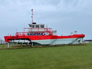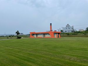 - キャンプ場から離れたところにある、ガリンコ号風の建物