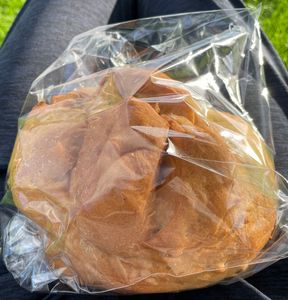 - キャンプ場の受付とくるみパン、ガリガリくんを購入