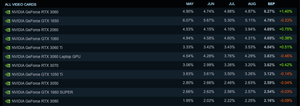 Steam 利用率では1位はRTX 3060, 2位がGTX 1650