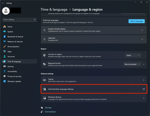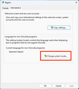 - Englishを使うとファイルの読み書きができずにエラーが発生するため、下記の設定変更が必要
