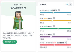 仕事 16personalities # きっかけ qiitaで記事を見てやってみた 年収が600万円アップした転職手順 30代前半で 700万 → 1,300万 ってマジかよ いわゆる性格診断 # 結果 主人公タイプだった 結果 主人公 合っているような、合っていないような # 他 性格タイプ