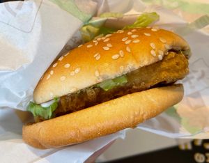 - バンズ、パティ(鶏肉を揚げたもの), レタス, ソース(マヨネーズ)