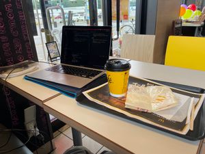 - 1 hour あるので、再度マクドナルドを訪問。ちょうど電源席に座っていた人が移動したので、その席を確保できた