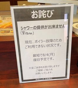 - Webサイトには掲載されていない。シャワー故障中は店舗Webサイトに掲載しておくべきだと思う