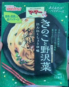- 味噌汁, 魚肉ソーセージ, パスタ きのこと野菜菜 にんにくしょうゆ味
