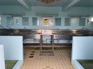 - トイレは仮設。炊事場は蛇口が2つしかない