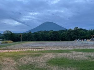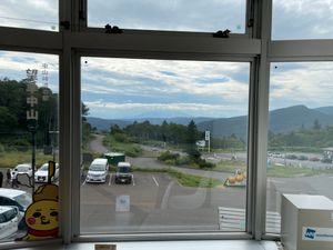 2Fラウンジからの景色。羊蹄山の頂上に雲がかかっている
