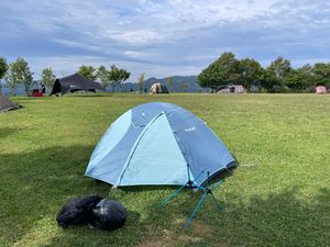 - 一度グランドシートとテントを離して、再度別の場所にテントを張った