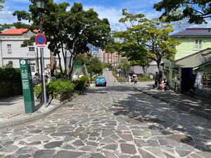 - 急坂, 海が見える, 道路が石なのが特徴かな